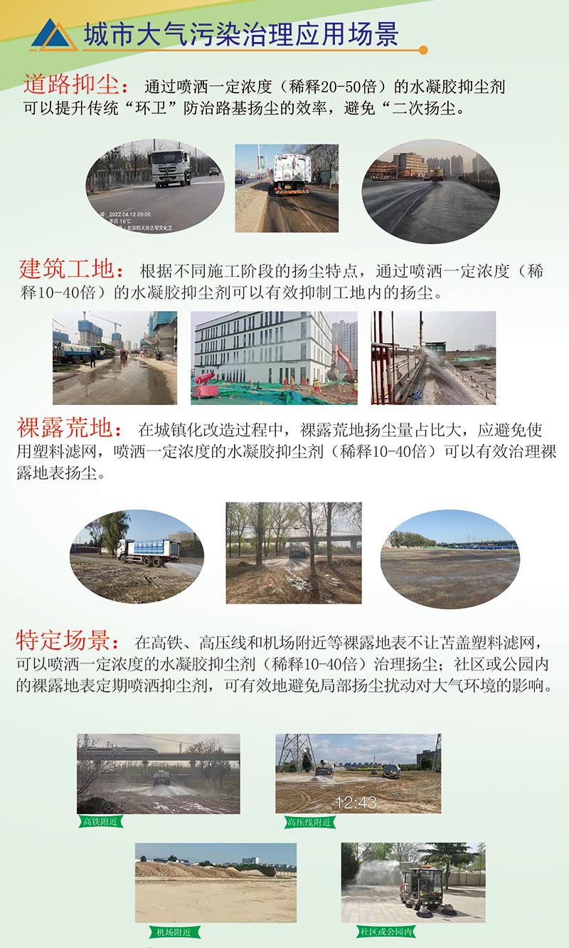 關(guān)于繼安 企業(yè)簡介: 繼安科技是由專家教授發(fā)起設(shè)立的專業(yè)技術(shù)公司(含繼安生態(tài)公司和湖北繼安生態(tài)環(huán)境科技有限公司等企業(yè)),是致力于科技創(chuàng)新、環(huán)保無公害、生物可降解抑塵降霾治理新思路的技術(shù)研發(fā)、銷售、產(chǎn)品服務于廣大客戶。 建立前期治理,中期維護,后期恢復大氣環(huán)境治理體系。 環(huán)保型水凝膠抑塵劑是可用于環(huán)保產(chǎn)業(yè)鏈環(huán)節(jié)中的大氣顆粒物污染治理領(lǐng)域, 產(chǎn)品所采用...